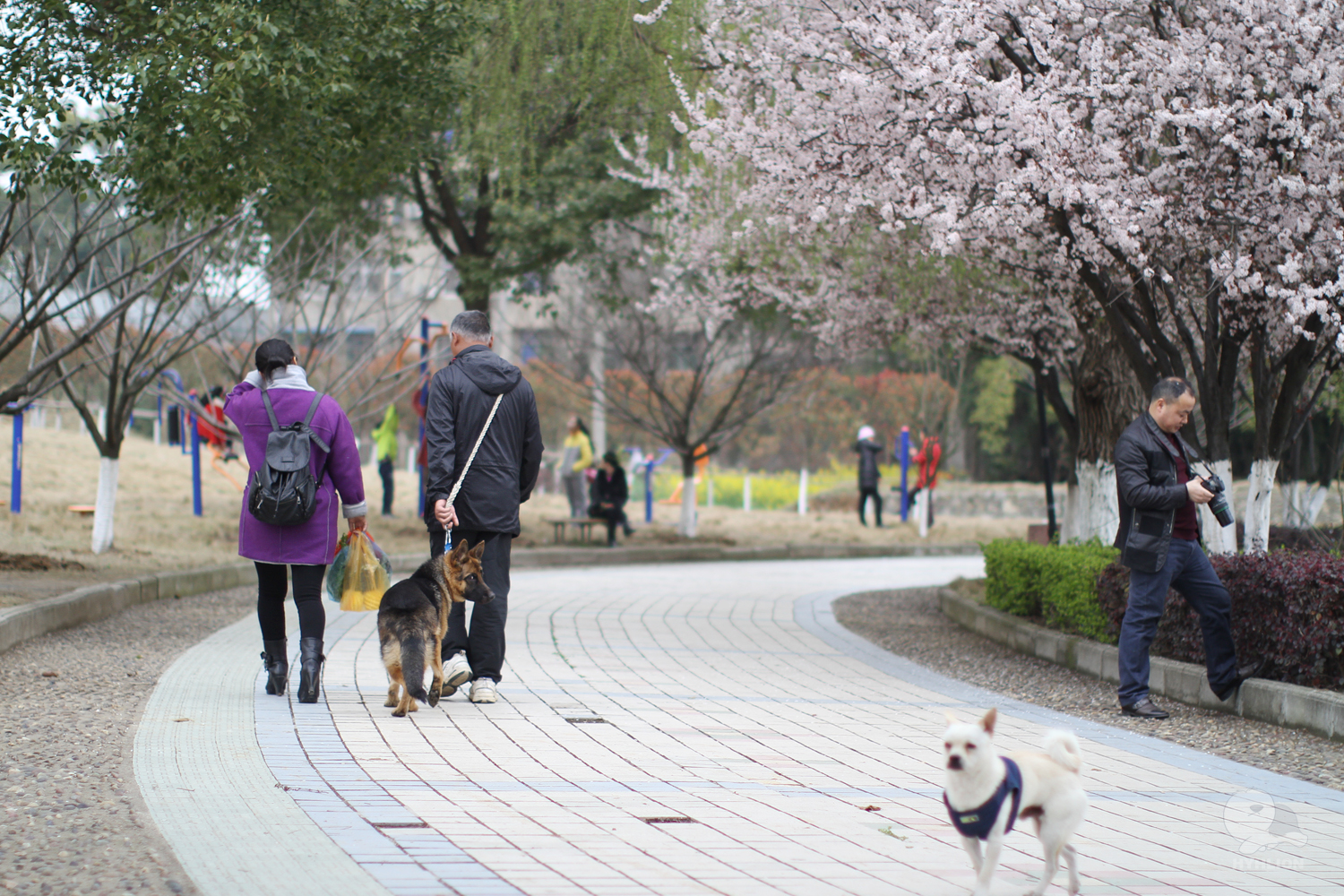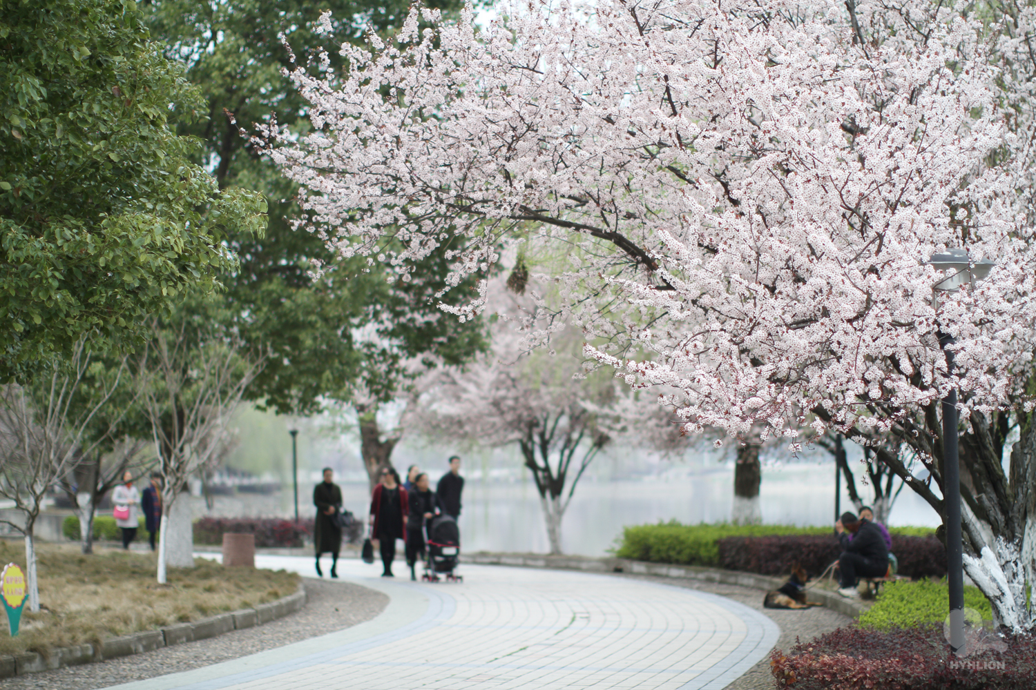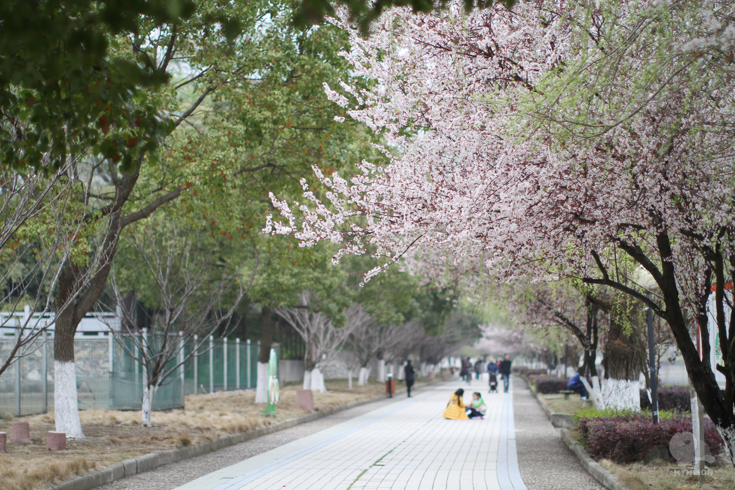 靠路另一边光光树枝的是樱花树,刚刚发小芽,估计再过一两周也要开了。