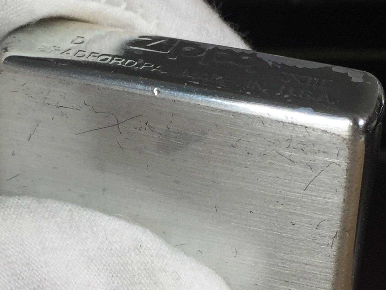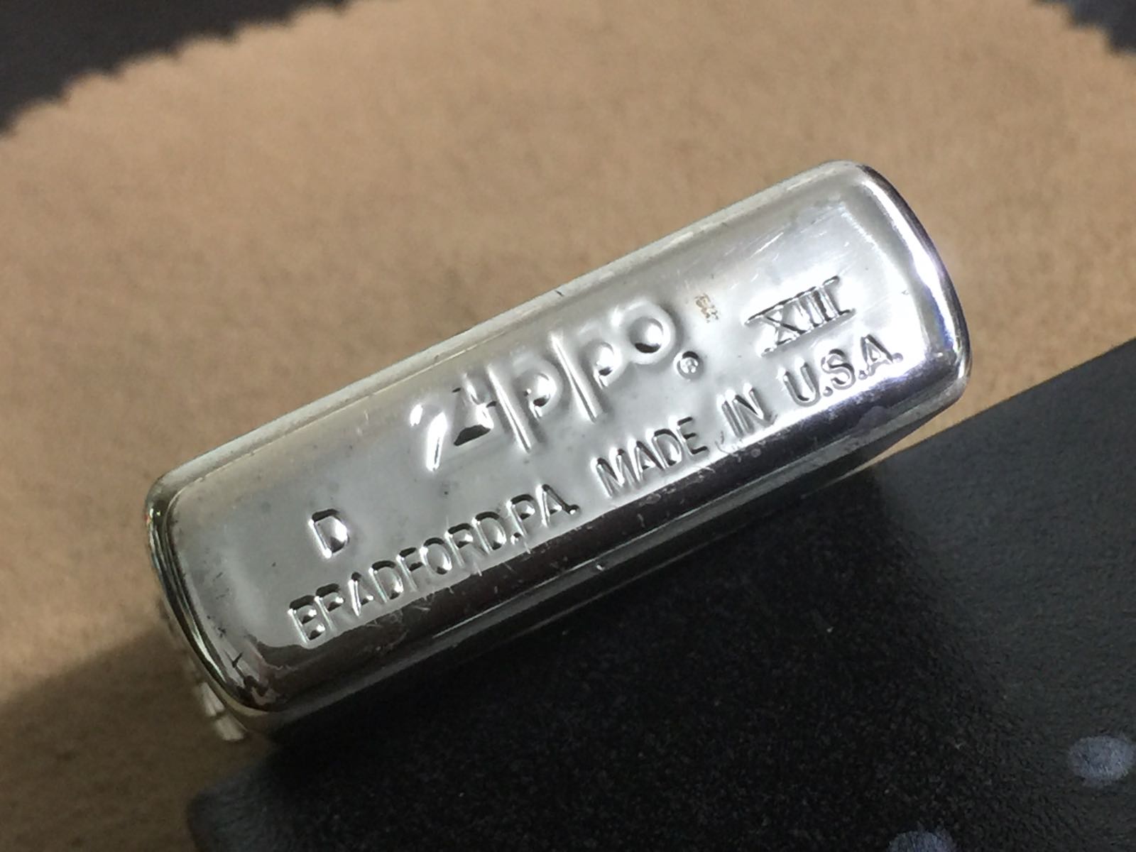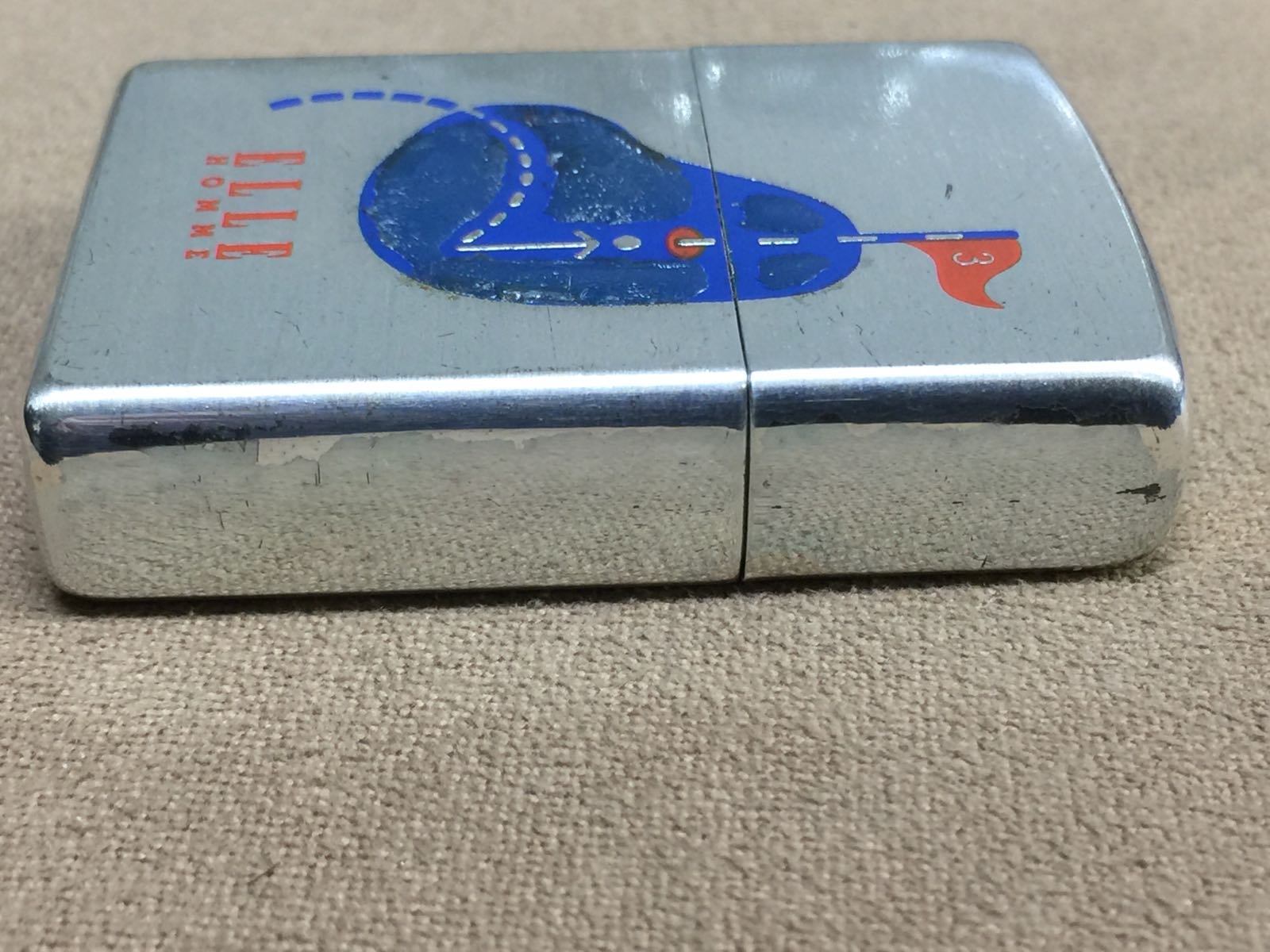 【具体描述】二手1997年4月 ELLE HOMME定制机,镀银底板蚀刻填漆+特殊涂层工艺。机身镀银层局部磨损痕迹,八角无磕碰,底部一处针眼微距拍出。铰链正常,原配96F内胆打火强劲,黑纸盒包装。