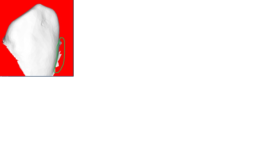 请问vtk中有什么方法可以让图中绿色区域内明显突出的部分便平滑吗
