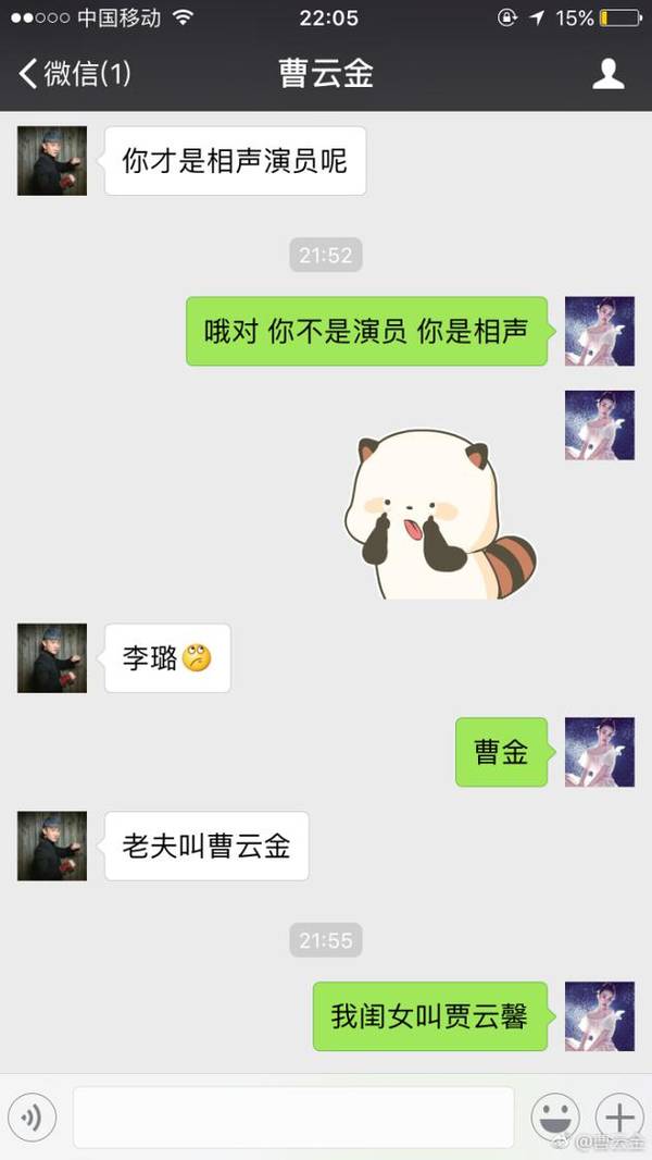 近日李小璐“做客”相声演员曹云金节目,上来曹云金就以“从珠穆朗玛峰下来的李小璐”作为开场欢迎词,更称每两个星期就会变一次样子,吐槽主咖李小璐掀起现场高潮,火药味十足。3月13日,曹云金在微博晒出和李小璐的聊天记录,李小璐称曹云金和女儿都是“云”字辈的,调皮喊话让其认她作干妈,惹得曹云金开玩笑怒删李小璐,十分的逗趣。