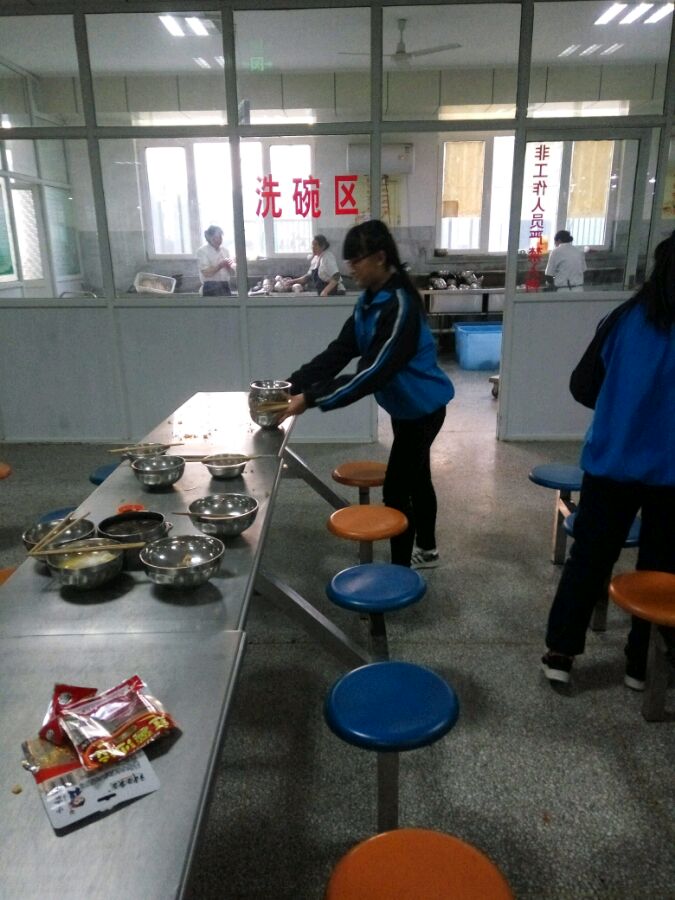 198班践行学雷锋做好事之收拾餐厅碗筷