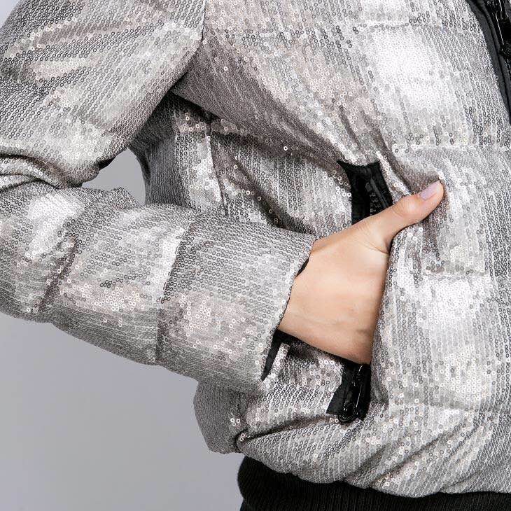 ONLY灰鸭绒连帽亮片羽绒服 特价300