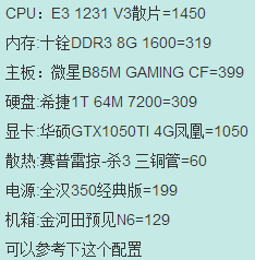 各位大神,小弟想配个主机,给个配置呗