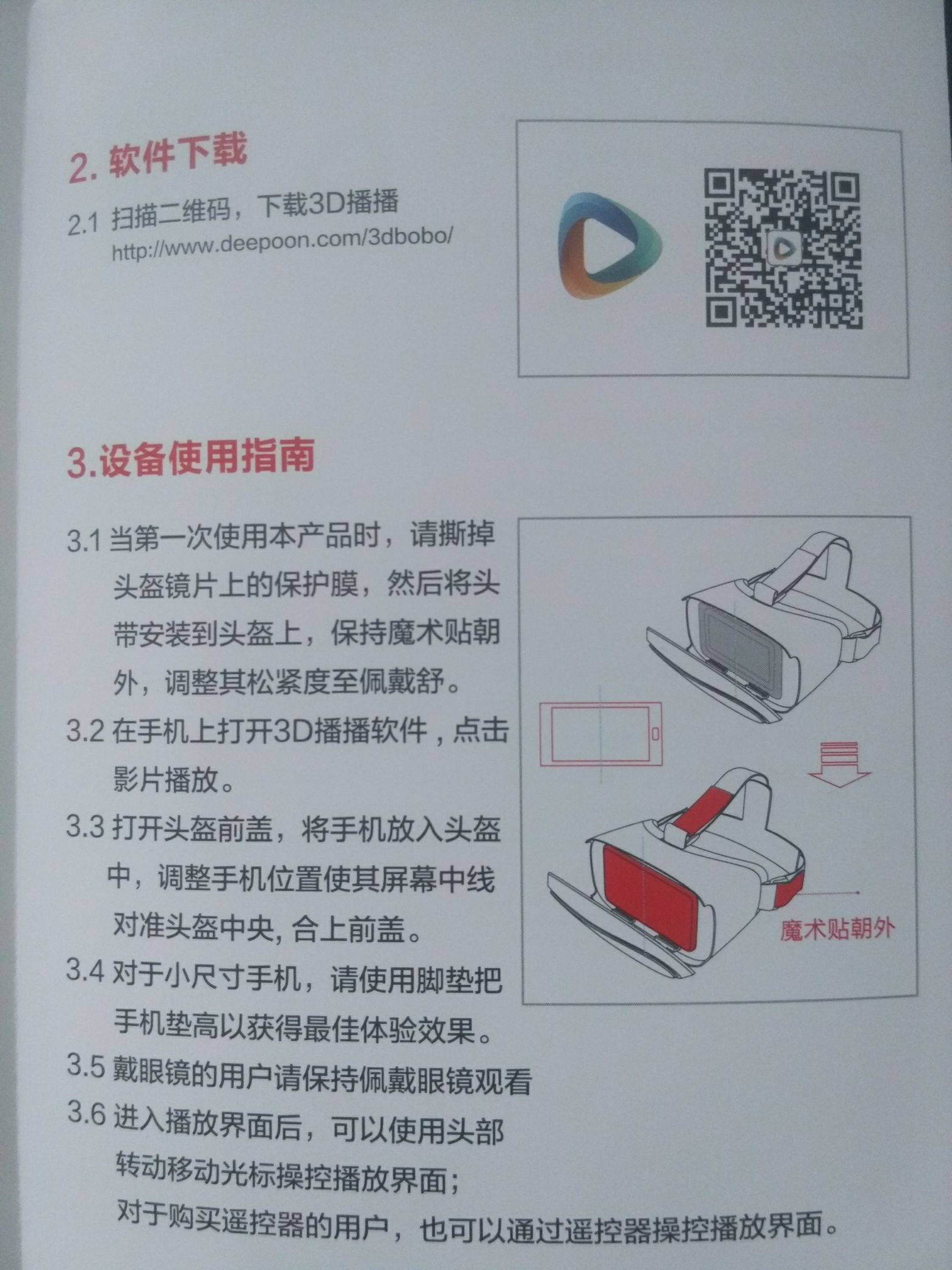 根据说明书的提示,会让你下载3D播播,当然也可以下载其他VR类型的APP,我在这里就用这款3D播播试一下吧。