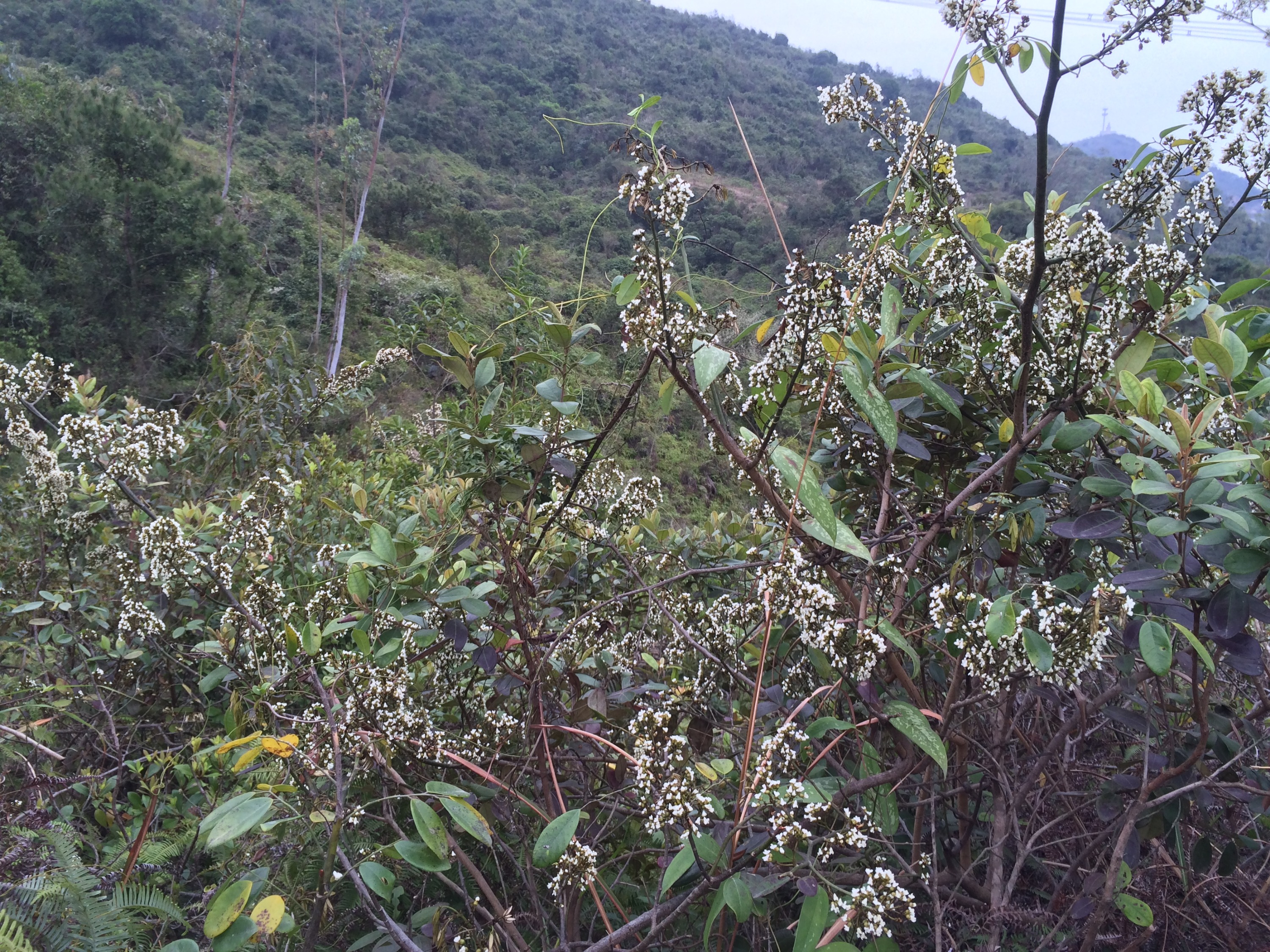 站在山岗上看到处都是开着白花的两粤黄檀,“广东新语”上记载只有1%的两粤黄檀会结香,想想我们找香的路上,的确如此。并且结香的降