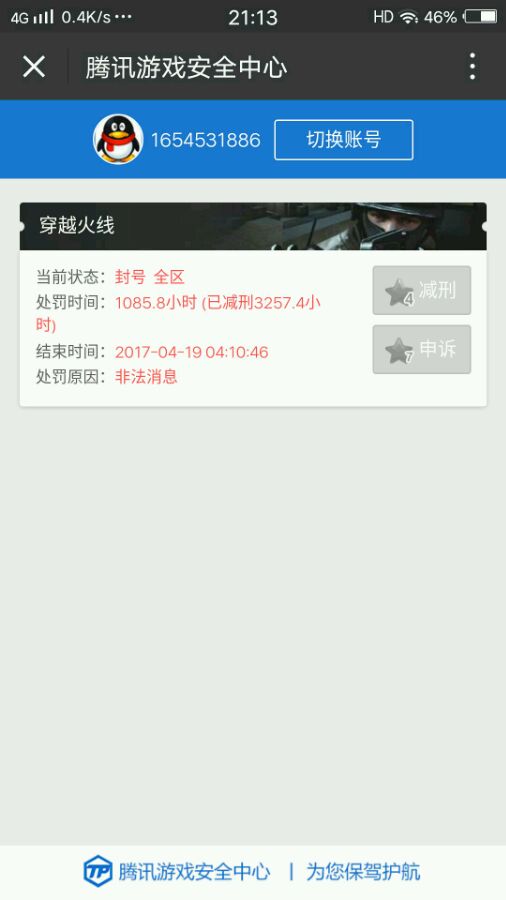 刚花完半价cf点就给我封号了,腾讯是不是嫌弃我充值太少了,如果是非法外挂封180天我也就认了,非法消息什么鬼封这么长时间?