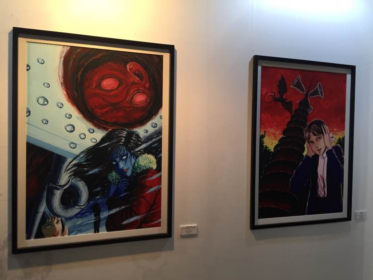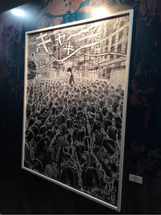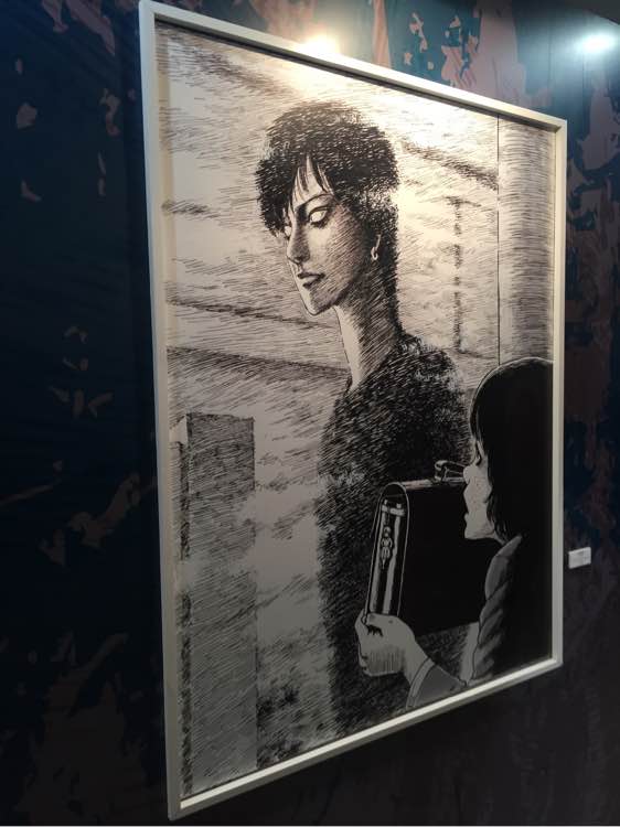 初中到现在二子的作品每一部都看过很多遍,深刻夸张出其不意脑洞大,他笔下的经典人物富江被拍了十多部电影。以为这个展不会有太多人,却人山人海,戴着会场的vr眼镜感觉又进入到伊藤润二构建的梦里。