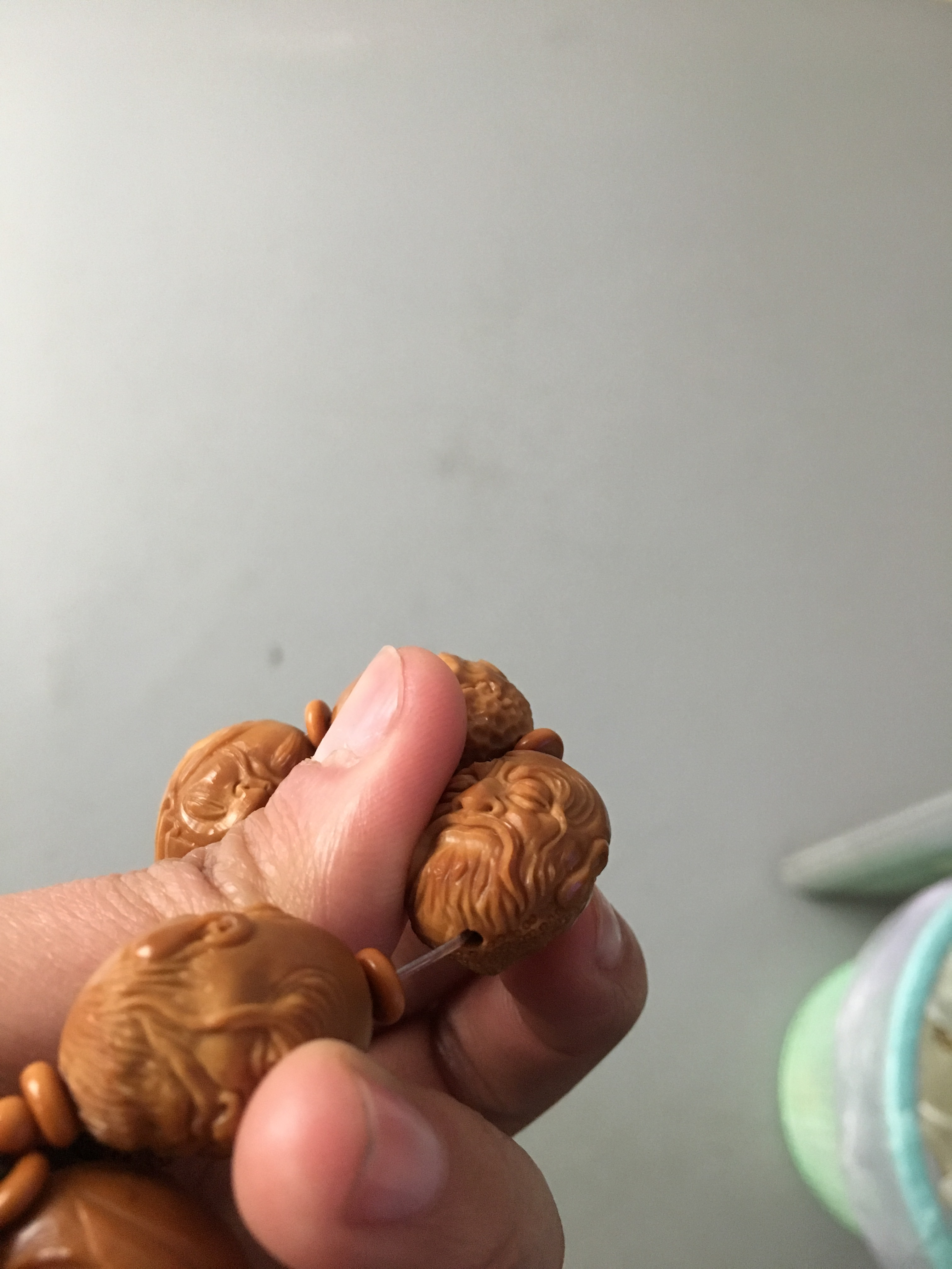 核雕手串,孔道不在正中心?
