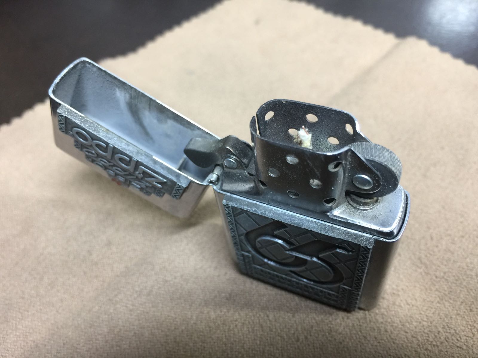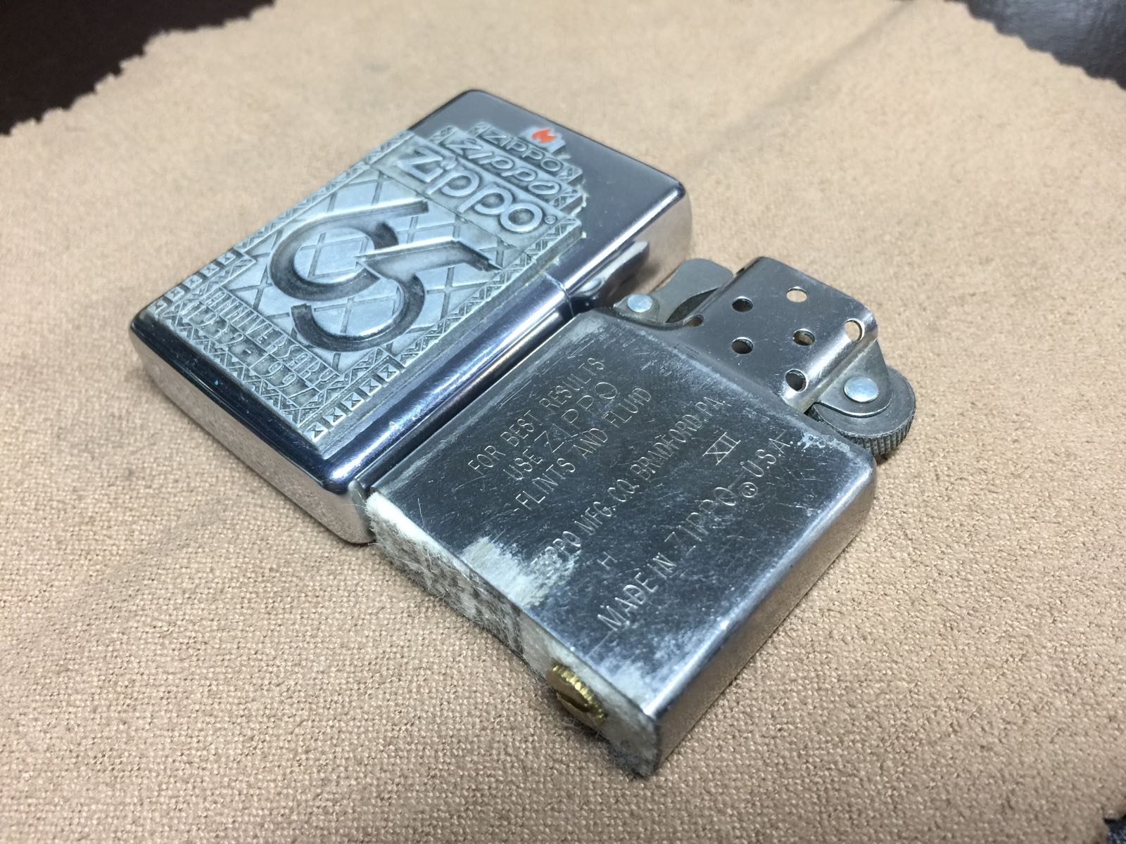 【具体描述】二手1997年年度机C97,反底刻。镜面底板纯锡65周年大贴章工艺。该机上盖掉过章,老外自己粘回去了,有胶水溢出,不过粘的挺牢。机身正常使用擦丝划痕,边角有针眼和小磕,定义差品。铰链正常,原配96H内胆打火强,无包装。