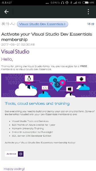 Thanks for joining the Visual Studio family. You are now eligible for a FREE membership to Visual Studio Dev Essentials.
