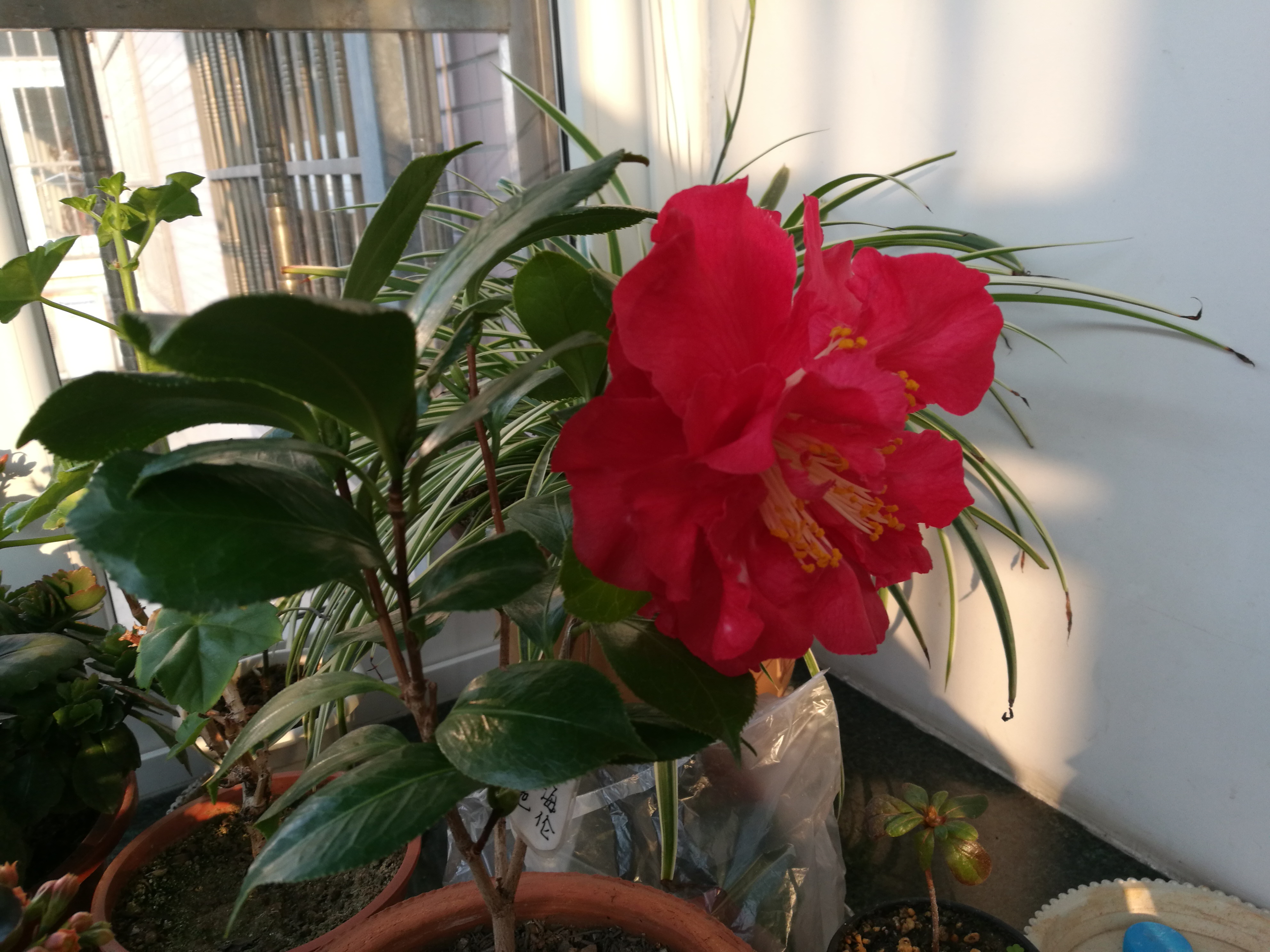 去年冬天是个暖——但是茶花开放的时间却比往年晚了些,到现在为止还没开完,还有一边开花一边出芽的。文瓣的大都开成武瓣,开品算不上好,大家凑合看吧。