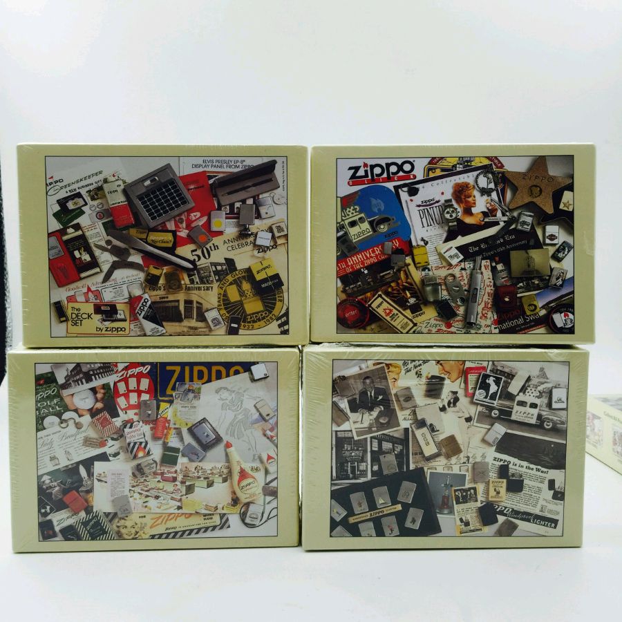 【具体描述】全新塑封,一套是4盒拼图,分别是4个主题,30~40,50~60,70~80,90~00的4个年代跨度的主题zippo产品。比较稀有,为02年,70周年时,与C02同期发布的特别周边产品。应该是非卖品。最后2张图,是我自己已拆的一副拼图展示,上拍的是4盒完好塑封的。一副拼图是100片。