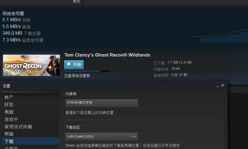 steam换下载地区立马见效,我下载峰值1.2MB/s