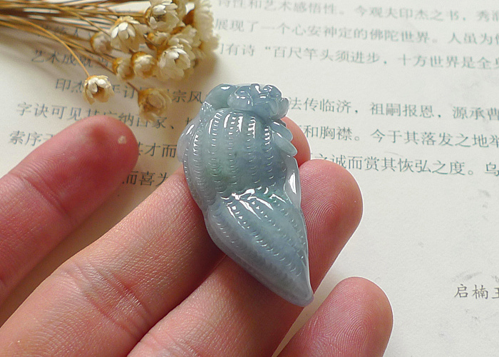 【名称】-缅甸天然翡翠A货蓝紫花生(6440)【尺寸】-44.6*19.8*11.3mm【重量】-14.2g【价格】-398元【简介】- 无裂,种水好,玉质细润,透光有细纹,无影响。