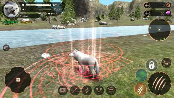 刚开始能狩猎的动物大多是老鼠、兔子、狐狸和小浣熊等,慢慢地成长起来才能挑战那些大野牛、猎豹这些危险系数高的物种。被攻击时会减少自身的血量,只要不死等待自然时间会自动恢复血条,狩猎成功会增加狼的经验和技能等级,收集到的爪币可用来升级生命、攻击、防御、速度属性,而钻石点则用来解锁狼的基础、气息、特殊技能。