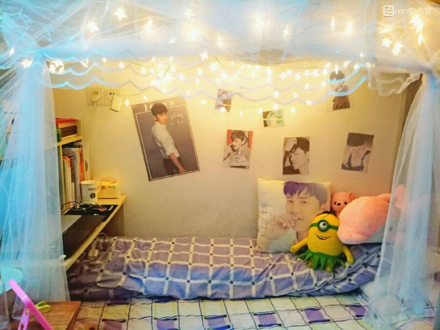 一到十一点半,宿管阿姨催着:"关灯了关灯了"。作为夜猫党实在不能忍受那么早熄灯啊,于是就想着自己买个灯顺便整了整自己的狗窝,感觉还挺好看的,住八人间,其实也没那么糟糕吧