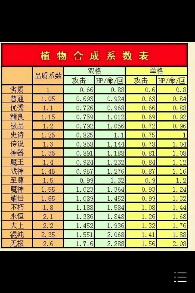 给你一张品质合成系数表。。