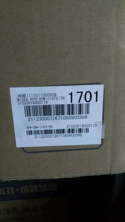 亲爱哒用户:晚上好!我是客服小美,型号在包装箱上可见,分别是:KFR-72W-310T2(TR) 、KFR-35W-110T2(TR)。