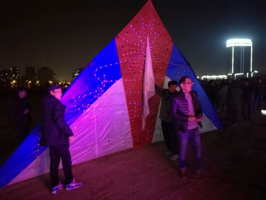 我代表山东菏泽翔天乐园风筝俱乐部全体队员,首先感谢毫州政府的大力支持,感谢余又胜会长,感谢破孩,感谢毫州蓝天风筝俱乐部全体风友们,感谢全国各地来参加风筝大赛的风友们,我们第一次参加风筝大赛,得到破孩的大力帮助,受到了热情招待,这次去我们去学习,去交朋友,前来参赛的风友们都很热情,我在这里在一次表示感谢,