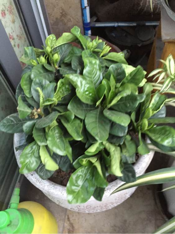 土太差,盆太大,根部窒息。栀子花对土壤的酸性要求很高,我记得栀子和杜鹃是常见花卉中对土壤酸性要求最高的品种。你这土种你的仙人球和吊兰没问题,种栀子花就难受了。