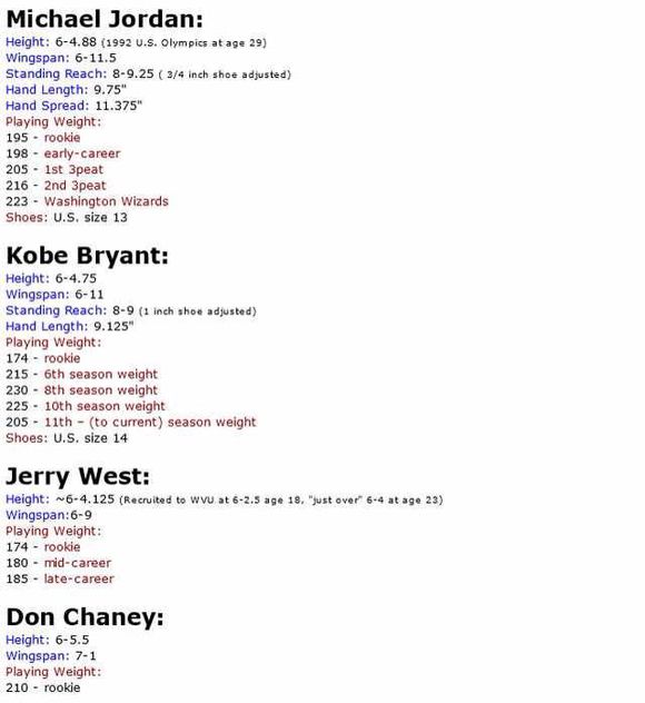 瓦妮莎在她和科比的合影下写道:“我的最爱。既然有人问我有多高:有趣的事实——我身高5英尺4英寸,科比是6英尺4又3/4英寸(1.95米)。我知道这个因为我认为他没有官方宣称的那么高,所以我给他量了(脱鞋)。不过,他穿上他的耐克鞋后是6英尺6英寸(1.98米)。(每个人都要减去1又1/4英寸)”