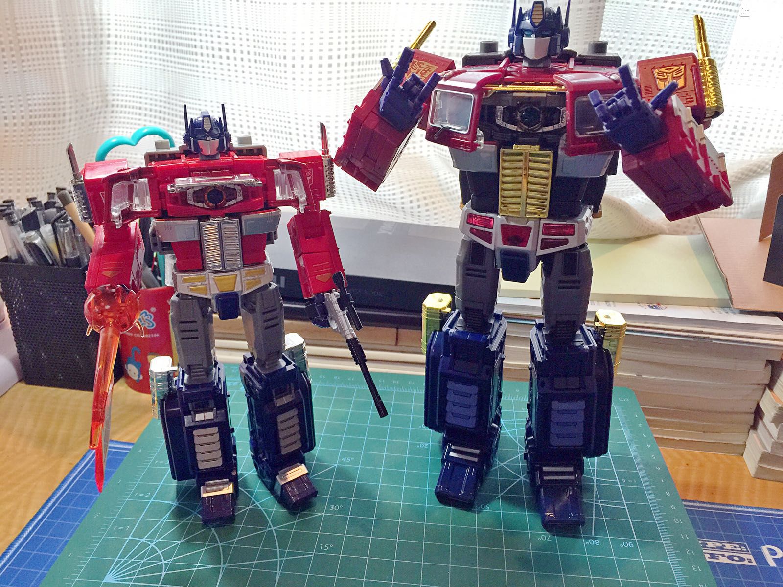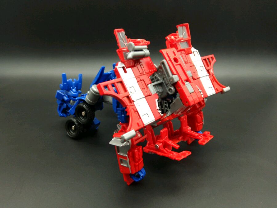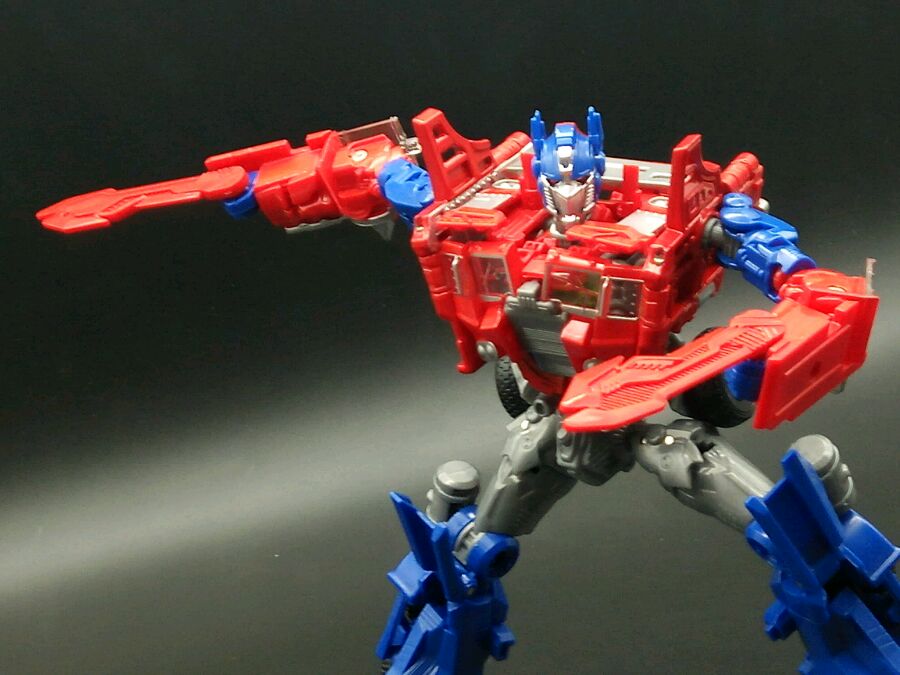 变形,本体关节有点松,变形没有正版流畅,替换头部最好拆螺丝,很难直接拔,可动跟正版一模一样,有双刀和吴医生大枪可玩性提高了好多,原版的弹射枪没有,这样更好,那枪是配备给电影3威震天的。