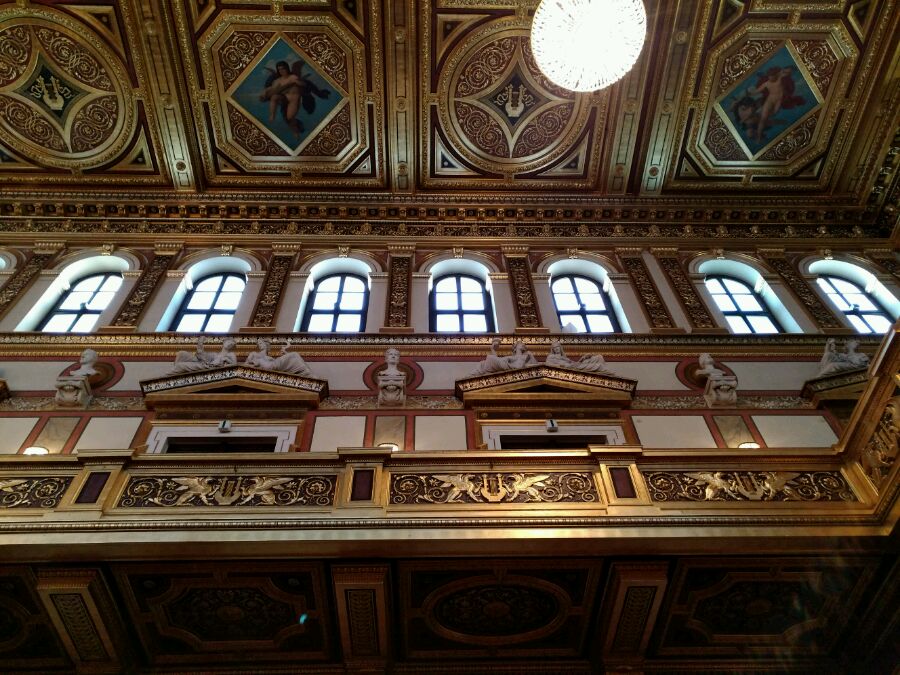 不是人人都能想进就进的,不是你掏钱就能进的,而是需要预约,很早的预约,或者能力很强的地接导游,才能搞定!里面不能拍照,但是解说员是地接导游的哥们,那就不一样了,敞开拍,随便拍了。正好里面某青年乐团在排练,风光都亮着