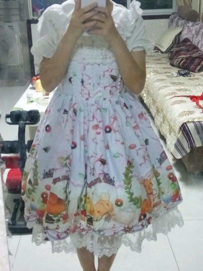 你别睡家爱丽丝裙 因为飞袖比较难驾驭 改成jsk吊带了哦~ 吊带边缘也好好改过没有痕迹 出的话40米