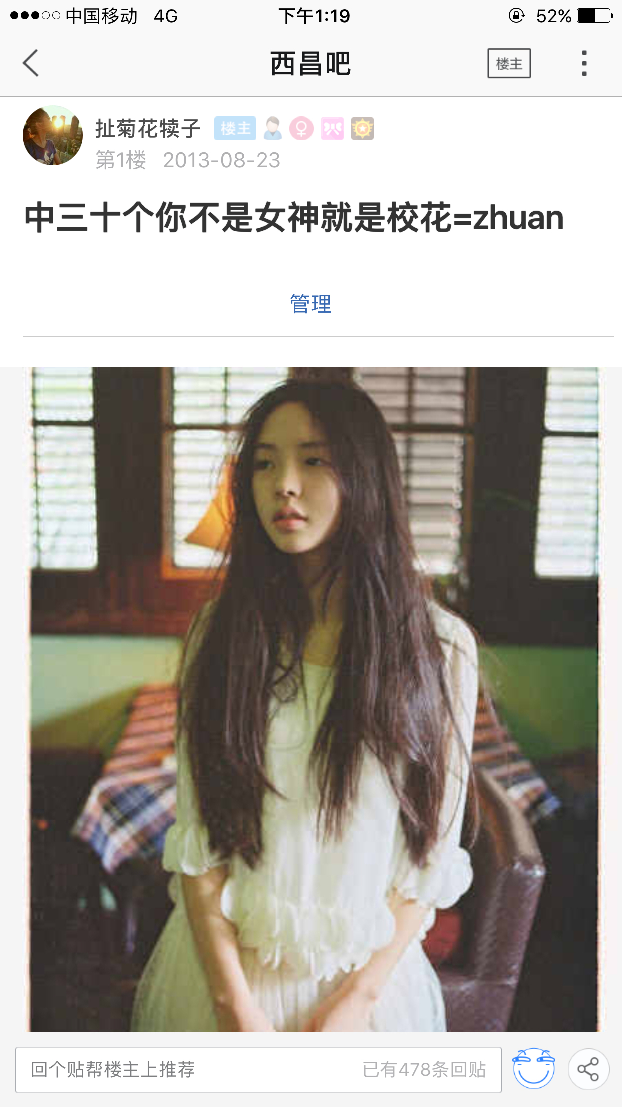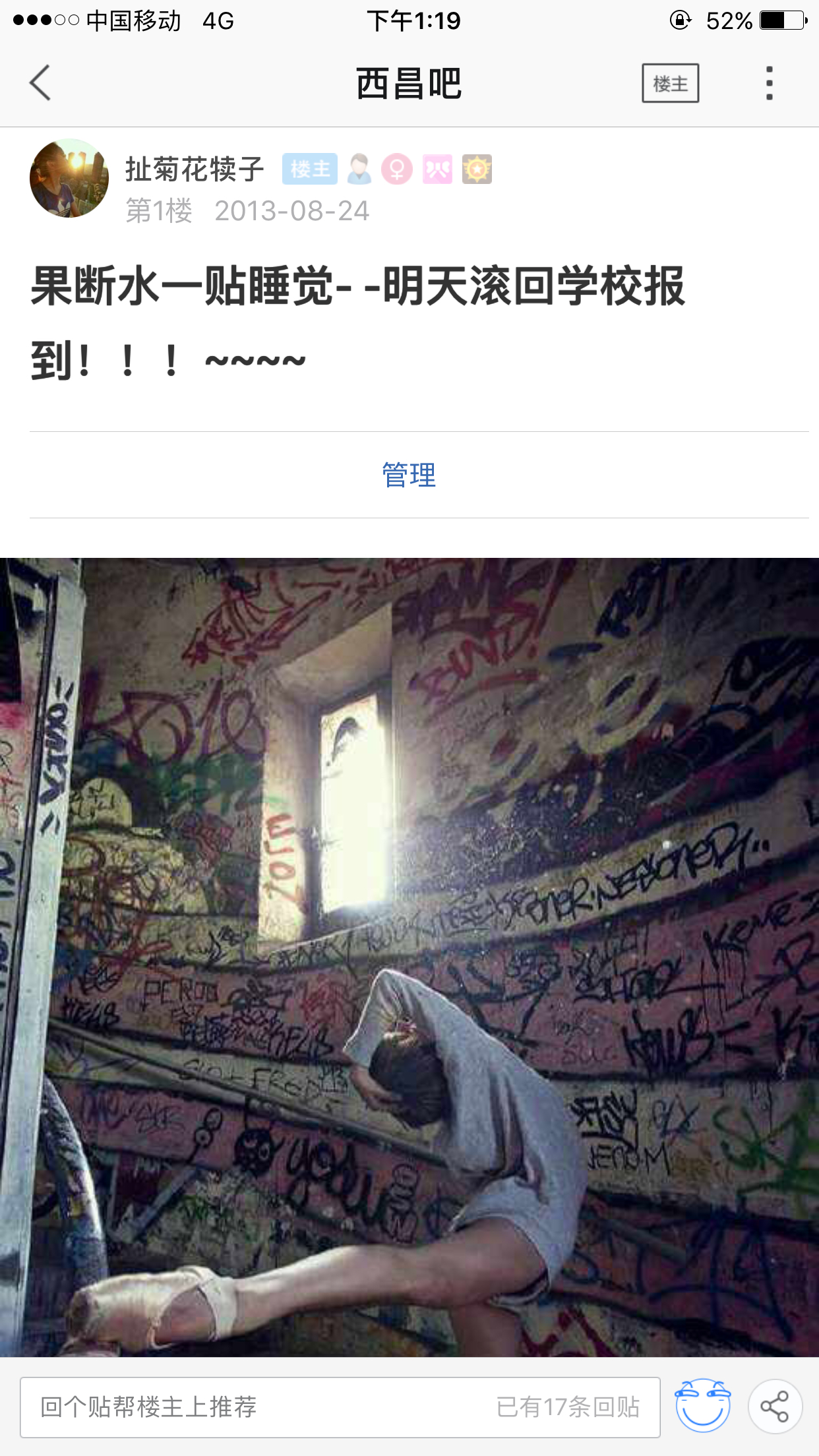 这是第一个贴,那会我还是个小新萌,好像这个头像也是从一开始创号就是这个,一下那么多年就过去,时间过的真快,在西昌吧我也经历了很多风风雨雨。但是我还是很感激。