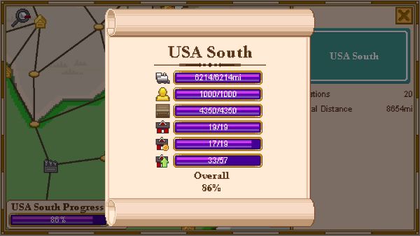 你现在在美国S,差两个车站没买,车站升级差24次