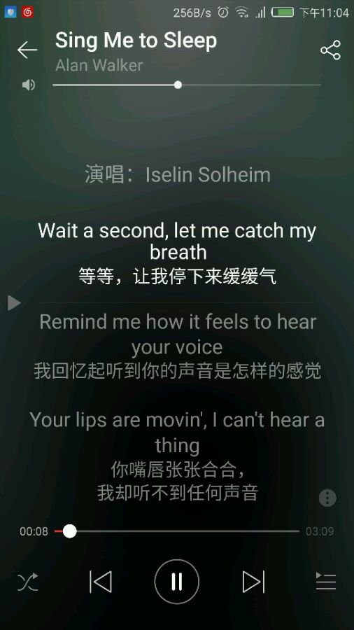 求sing me to sleep的中文楷音,,很喜欢这首音乐,但不会英语。。。