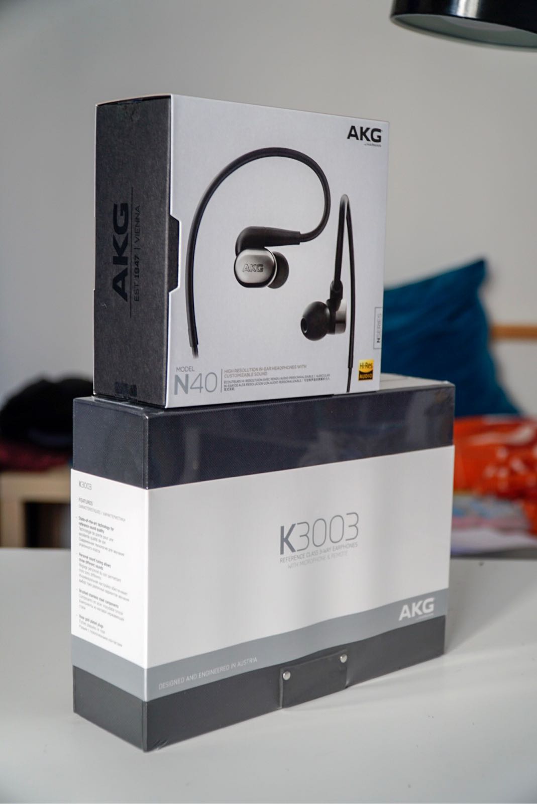 事情还得从3月份说起,在一家特卖网站上,akg破天荒的有k3003i打折,打折力度之大,一度令人怀疑是不是屏幕坏了。果然,不乏识货的以及有胆识的人,上午发布的消息,当天傍晚就没货了。我身边就有这么一位。另一个哥们心里这叫一个不甘心呀!赶紧登陆物色寻摸,一看还有个n40,这价格也相当诱人!我记得谁说的来着,n40声音也就值1000?这下好,还不到1000,就这样n40站上了我们的pk擂台的另一侧。那么,作为akg家圈铁上古旗舰以及次旗舰,会碰撞出怎样的火花呢?让咱们拭目以待。注:欧元和人民币汇率按7.4算