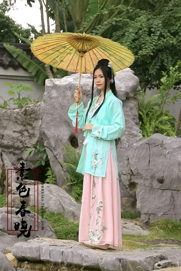 妆素,绣花对襟襦裙