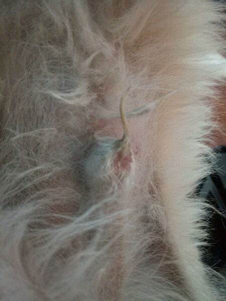 狗狗生殖器的毛毛黏住了