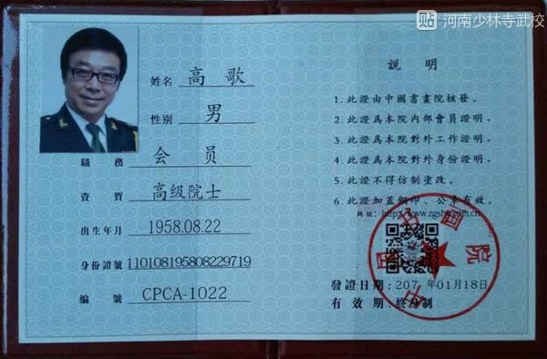 近日,从北京中国书画院传来喜讯,经中国书画院艺术委员会专家组审核评定,授予中国著名书法家高歌为中国书画院高级院士,并为高歌颁发了高级院士会员证书及书画作品润格证书;被世界华人书画家协会聘请为世界华人书画家协会副主席,中国梦大型书画创作委员会聘任为中国梦大型书画创作委员会副主席,并为高歌颁发了聘书及世界华人书画名家润格证书;同时还被世界华人文化艺术团聘请担任第三届世界华人文化艺术团执行团长,并为高歌颁发了聘书。高歌先生的作品笔法含蕴,收放适度,章法谨严而自由,结字奇诡而散淡,足可令人反复玩味。可谓“挥豪放浪形骸外,醉笔守真方寸中”。