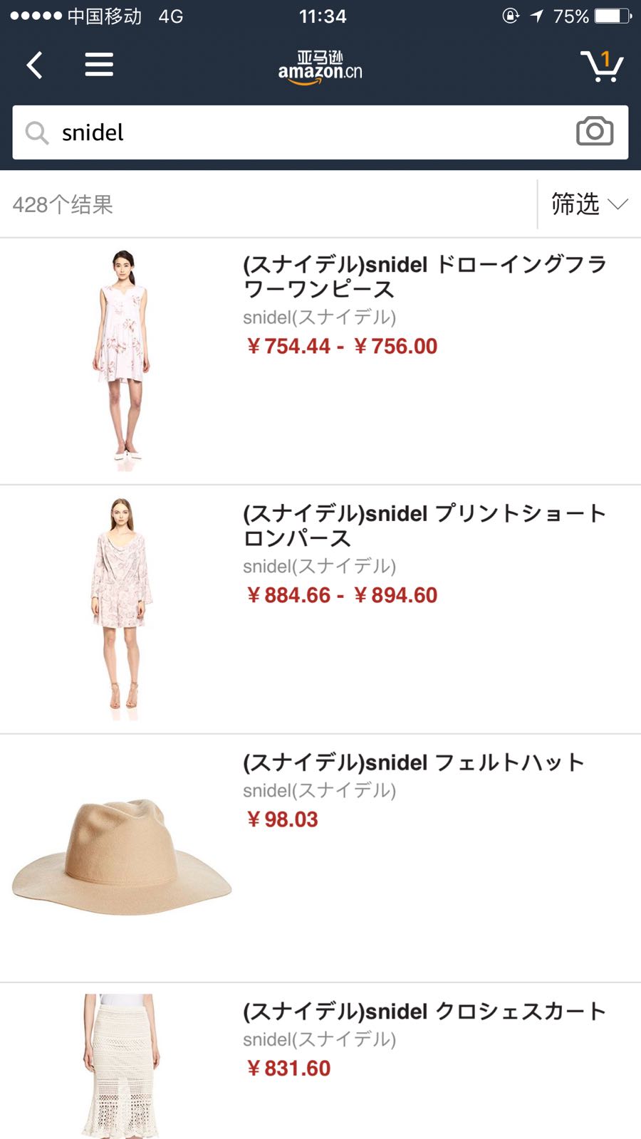 刚发现的,不晓得怎么在日亚买snidel的仙女们可以直接在中亚下单买snidel了,直邮中国。直邮商品不用付日本国内税,但是要交进口税和国际运费。不过亚马逊现在没活动,衣服原价买的话,我看中的那件衣服算了一下跟代购价格+运费价格差不多,官网已经sold out的。在犹豫是不是要下单,又要剁手了