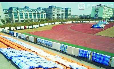 被子围起来能绕整合操场一圈还不止!连观众席也未能幸免。