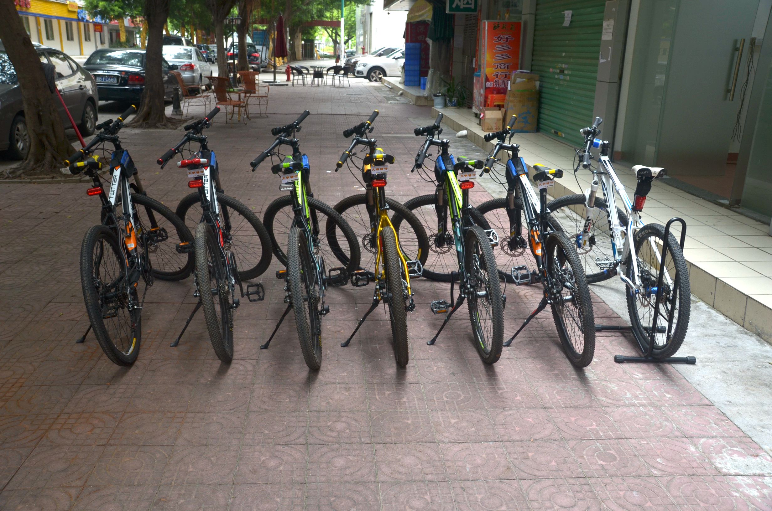 本店专业山地车出租,配置喜玛偌21\24速山地车、前后双碟刹。可调节避震前叉,山地车出租,宝安西乡自行车出租。