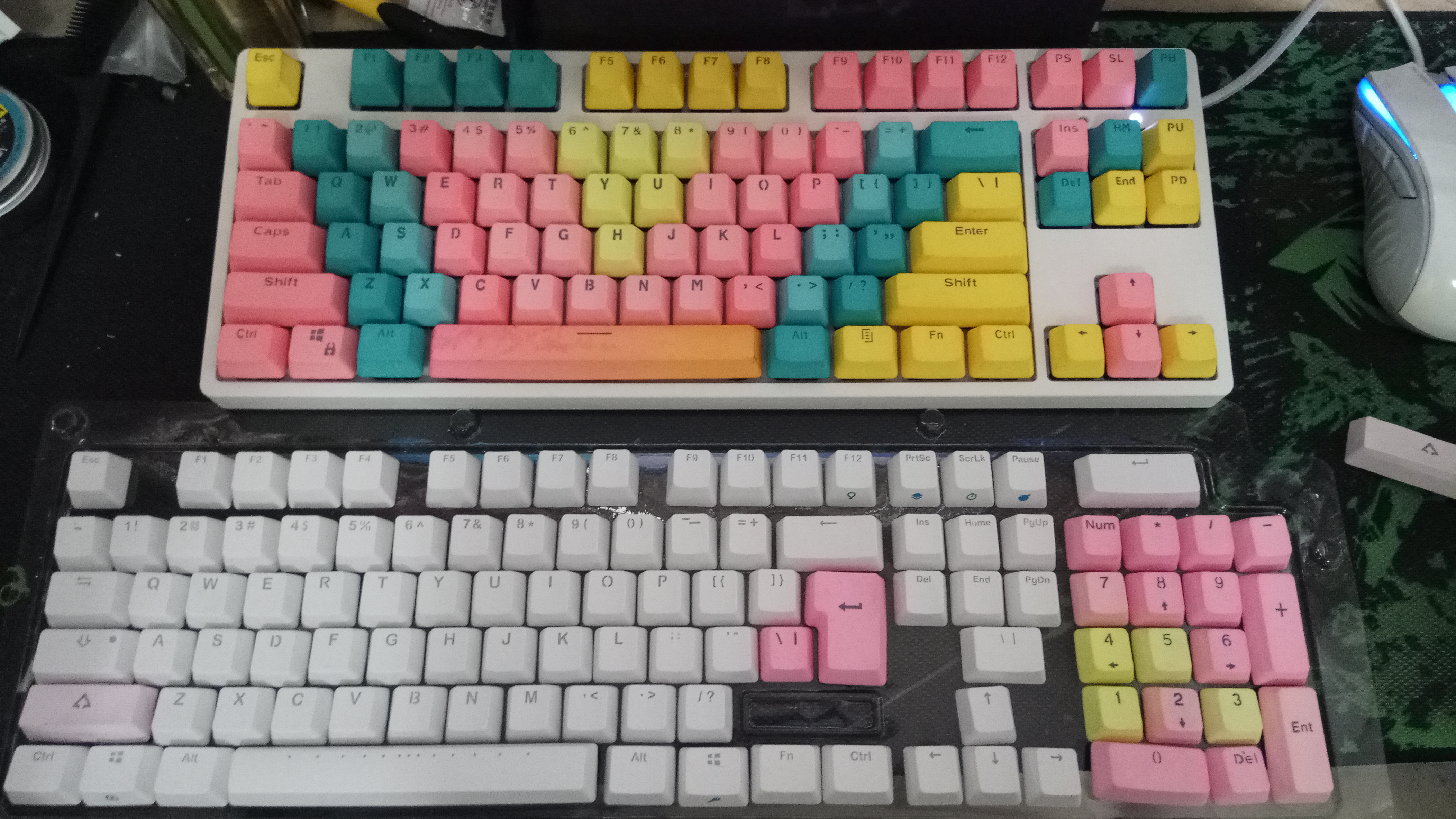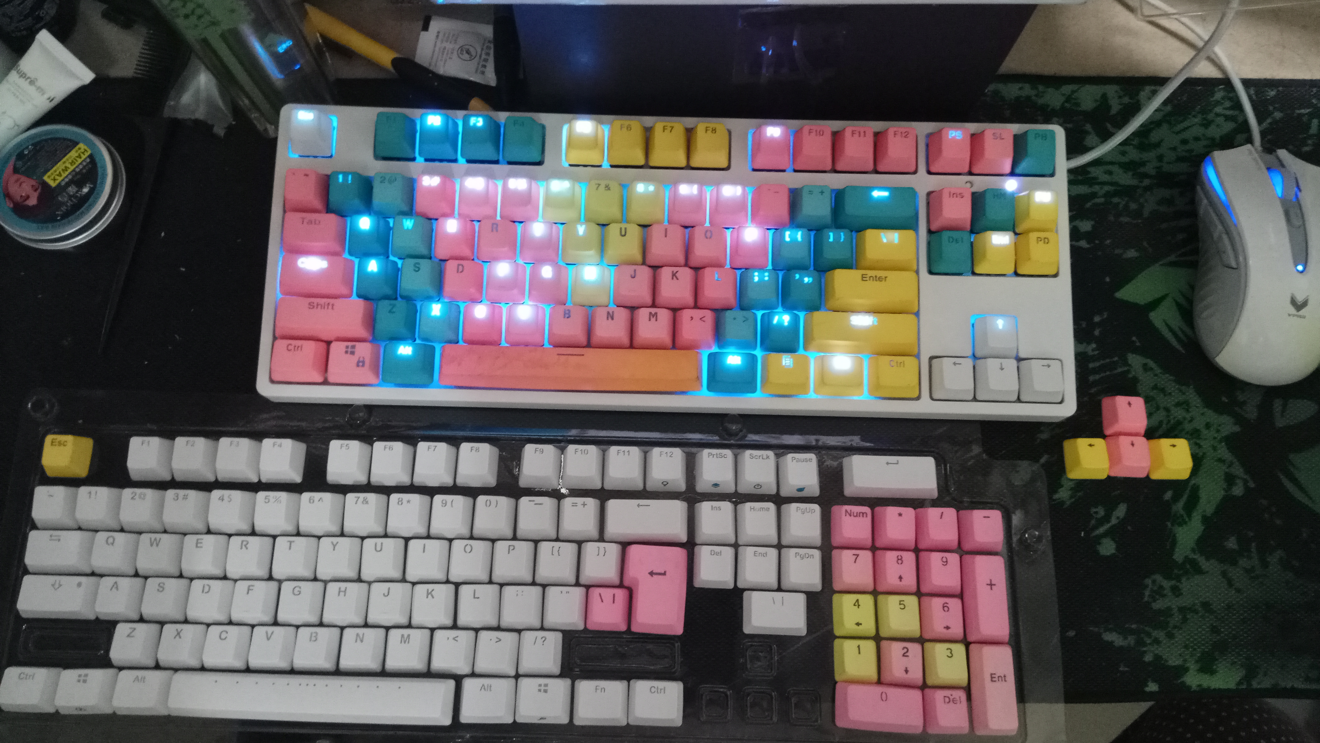 tb入一套pbt键帽侵染橙色搞差些,粉色搞得最好,空格键两色没搞好。