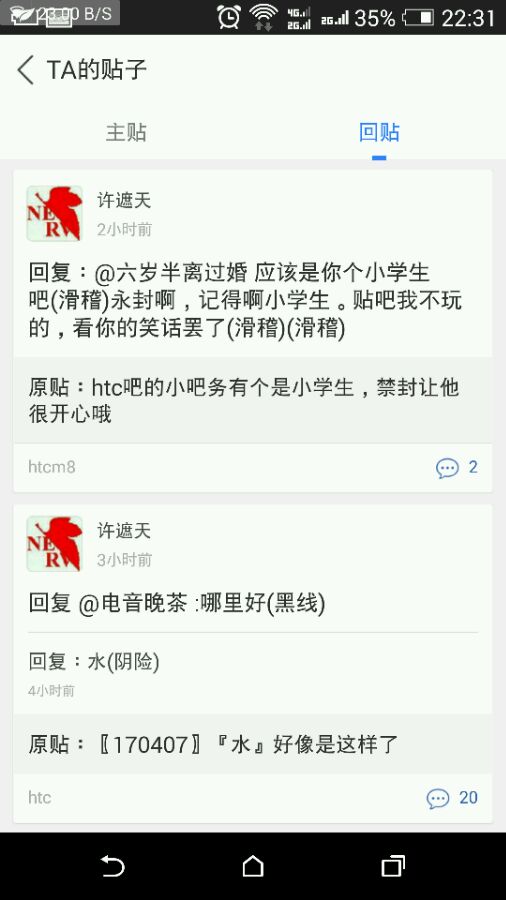 htc吧的小吧务有个是小学生,禁封让他很开心哦