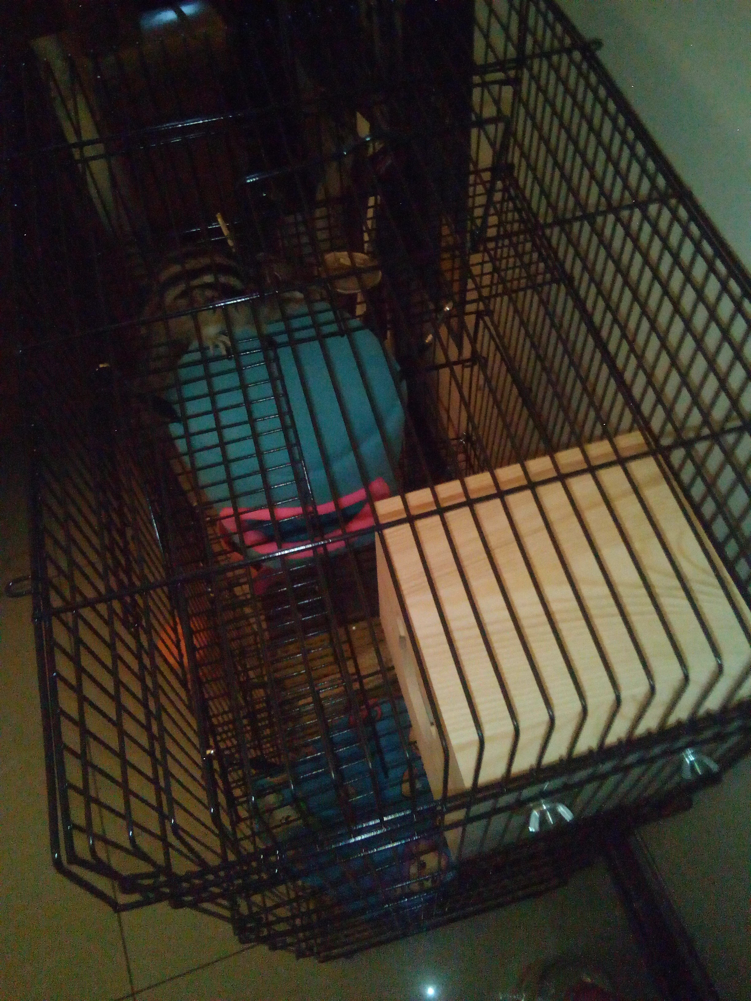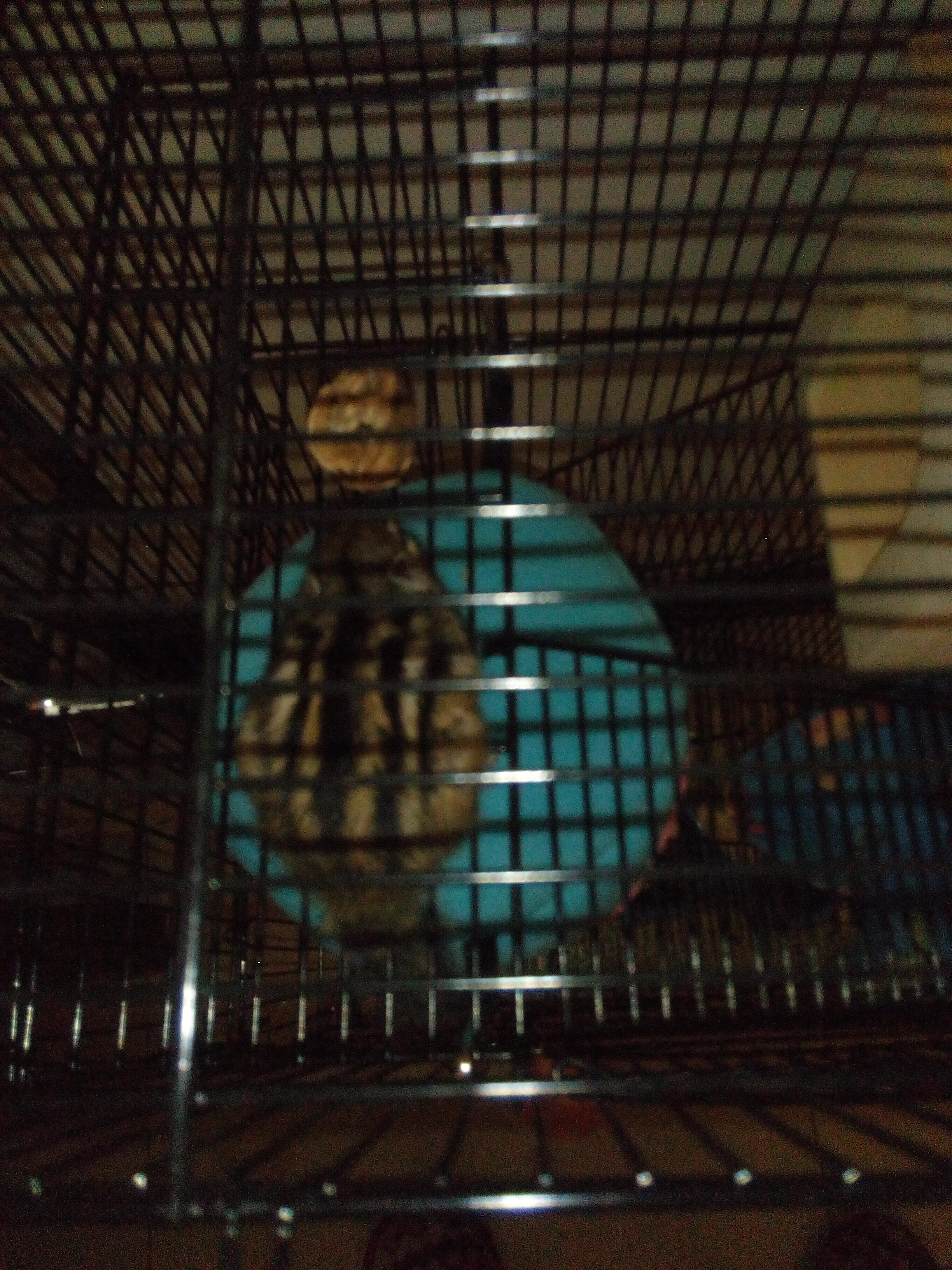 还不熟悉环境,胆子小,窝移到下面一点,里面放点吃的试试