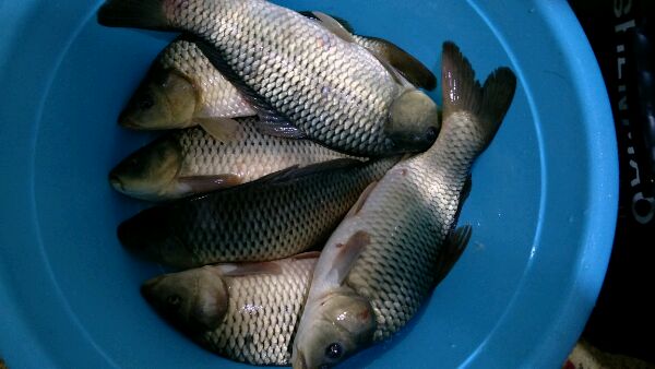 前天翘班回来 和蓝天 豆豆 华子 老孟 忘川 八宝去星光夜钓 鲤子给豆豆了没照照片 自己拿回来5条鲶鱼3条鲫鱼