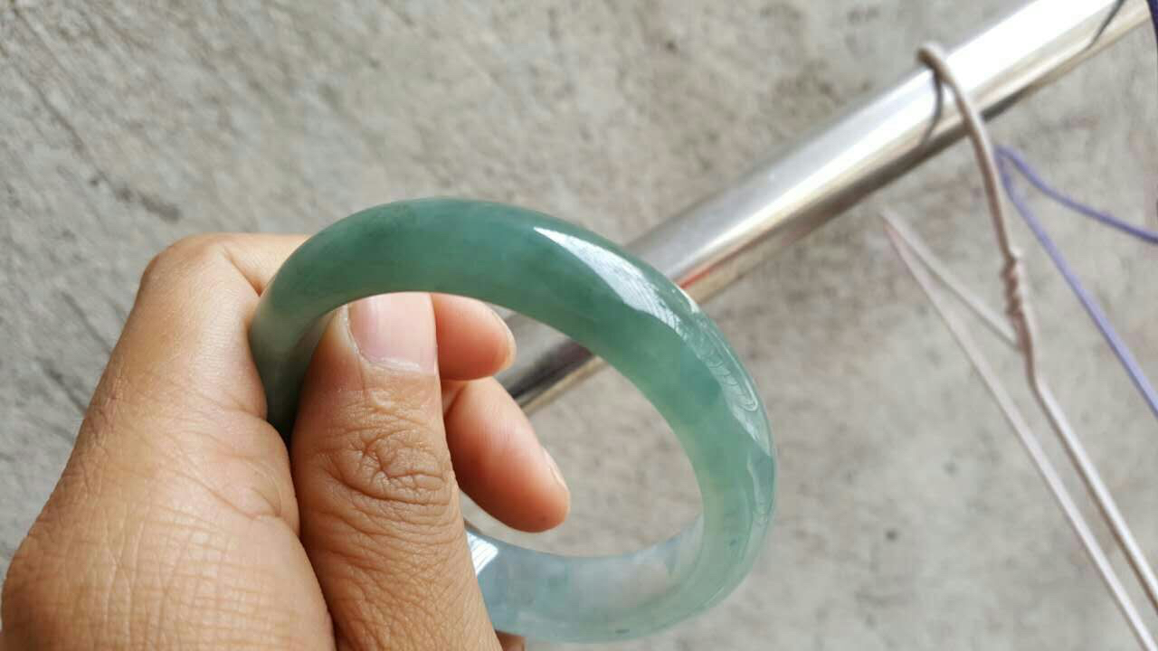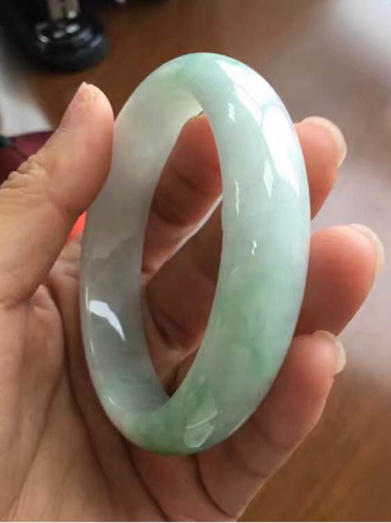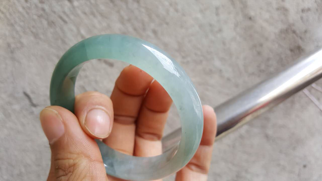 圈口56.2-14-7.9 冰糯种蓝油 冰透肉细 有棉纹 价钱1300 可刀 走宝 鉴赏三天
