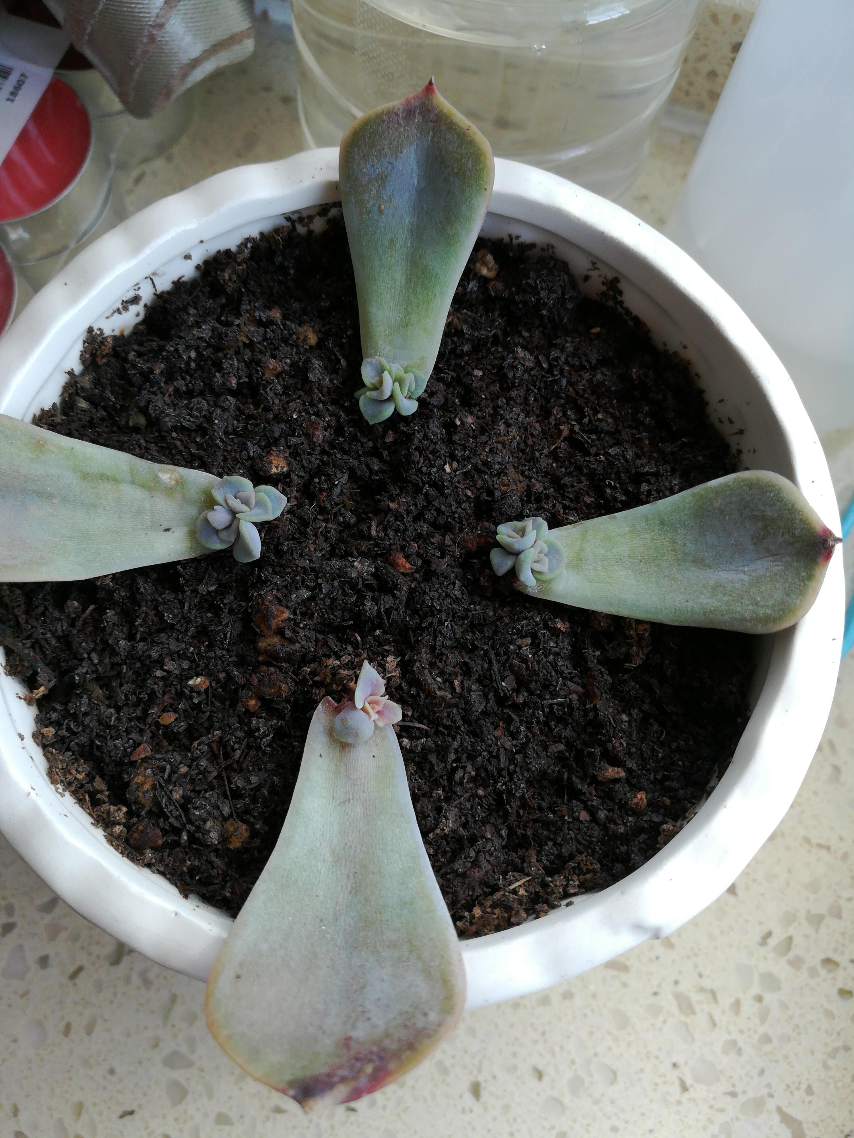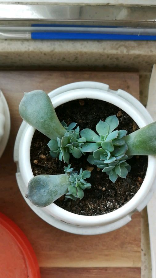 2017/4/17皮氏莲,有一片叶子根系长的很好,有点悬空的感觉,这么小就想变老庄么?