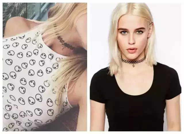 这种远看很像是纹身的款式也被称作Tattoo Chocker,在欧美风靡一时。▼