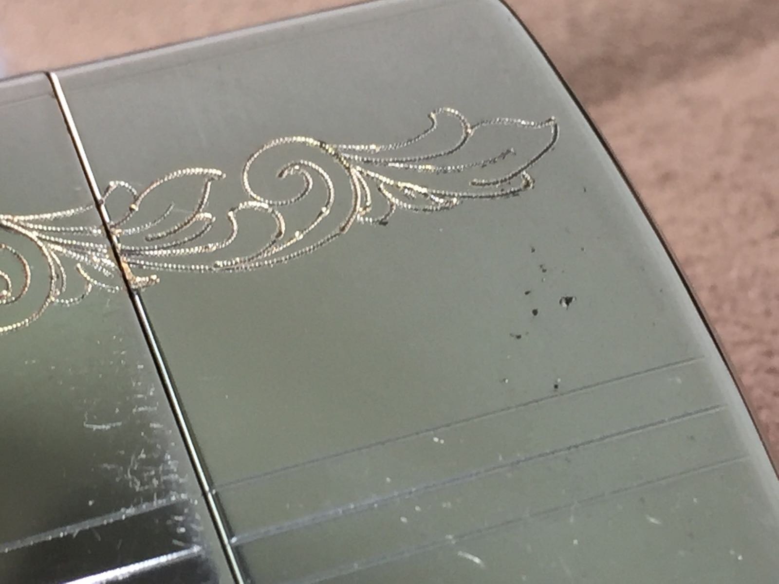 【具体描述】二手1994年3月 SILVER PLATE 美版镀银底刻机。双面点刻雕花工艺,实物比照片漂亮。机身正常使用擦丝浅划痕,无磕碰,背面少许针眼微距拍出。铰链正常,原配94B内胆打火强劲,黑纸盒包装。