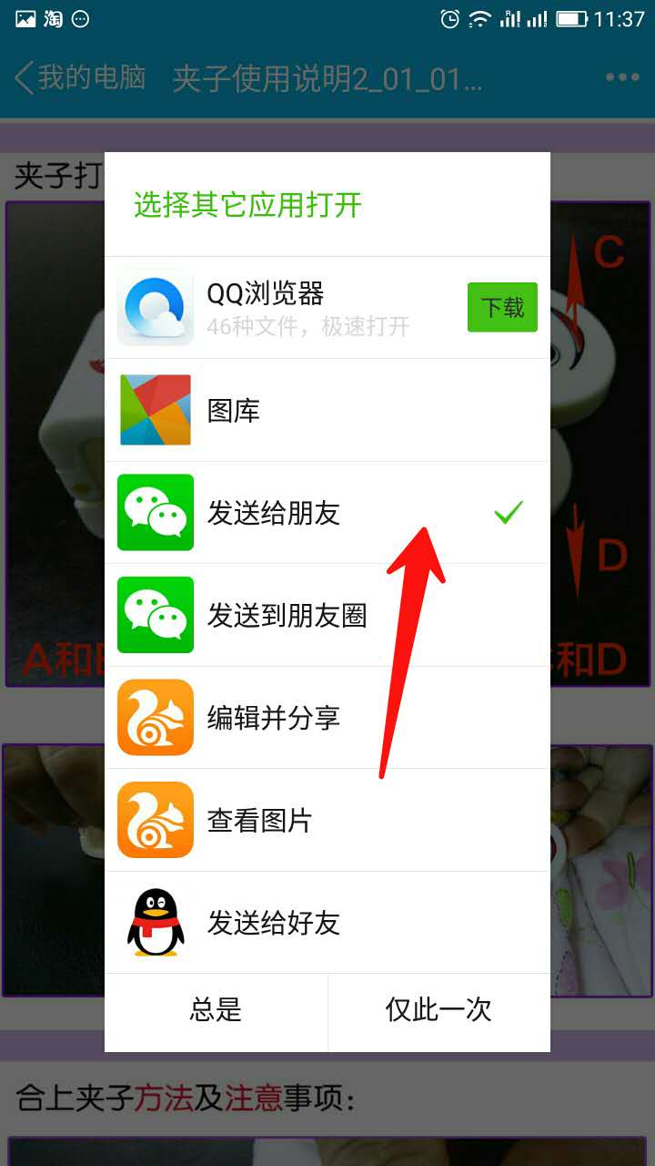 4、选择“发送给朋友”,选择“仅此一次”