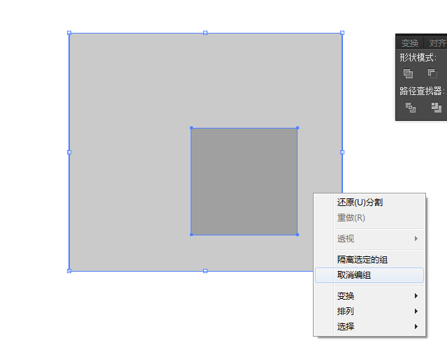 里面的小方块拿出来,大方块看起来是镂空了,然而实际上变成了复合路径