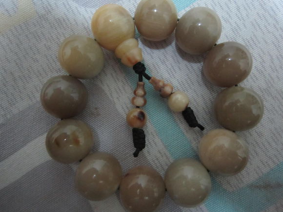 这串看起来不是牛角粉和树脂压成的 倒像是直接用的树脂!可以用打火机烧一下闻一闻。没塑料味的话还行 有塑料味就扔了吧