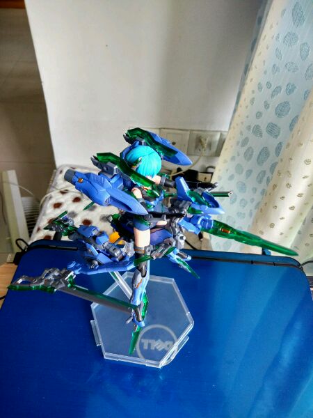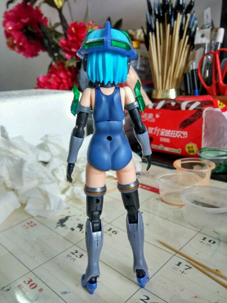 一开始喷了头发发现太浅,果断改成粉色系,顺眼了很多,图中会发现腿部大腿根已经被裆部蹭到了,还好可以缩上去,这款的腿是很不错,但对于上色党很不友好,动不动就刮漆,至于为什么和你们家的女儿有微妙的不同?其实我是当成美少女手办来做的,皮肤做了阴影,还有还原了fa大鹫的绿色透明件和偏蓝的色调,回头我会把其他补上,还有空中摩托也很快会弄好,这次不会烂尾的